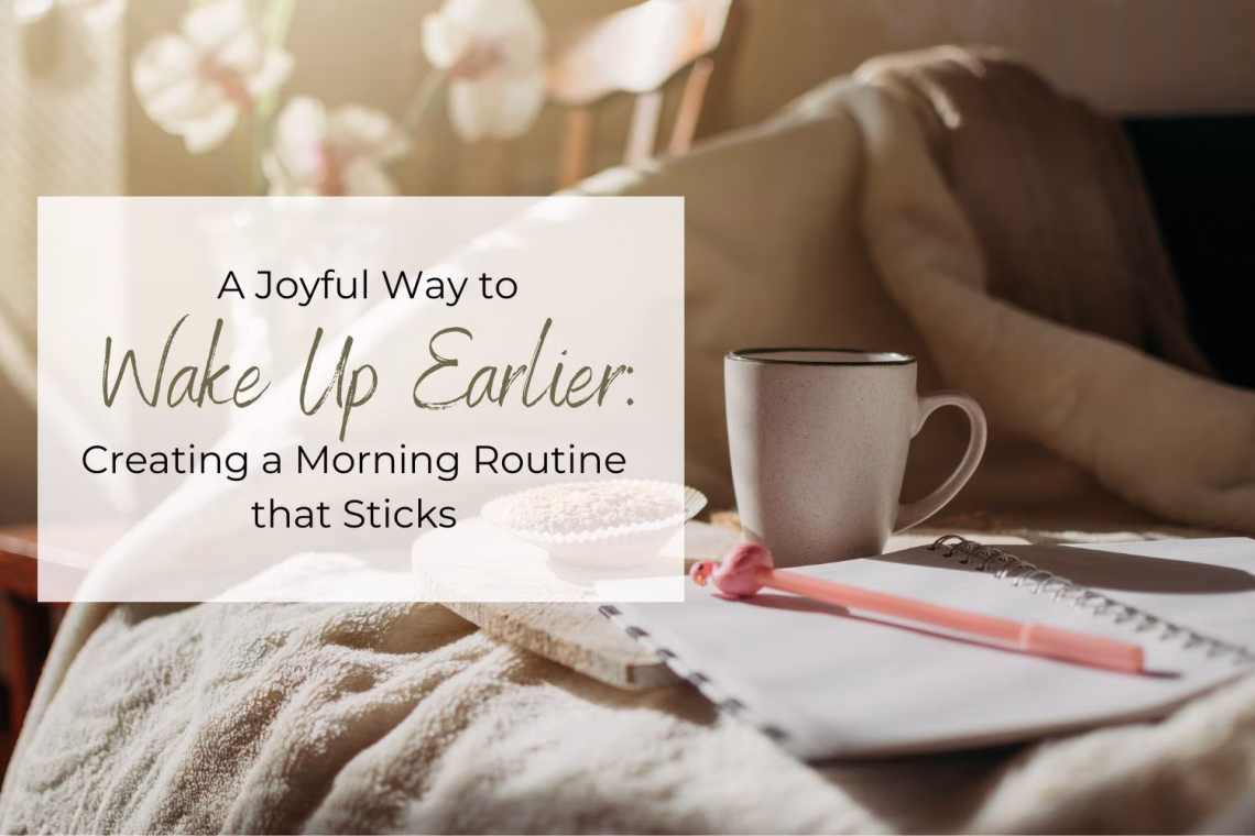 Now that I’m self-employed, I still have full days, but the time is mine. I don’t have to be out the door at a certain time, so the allure of a cozy bed (even with my kids monkeying around in there) is strong. So early mornings are less about productivity and more about showing up grounded and available in the morning. To start the day with joy, even.